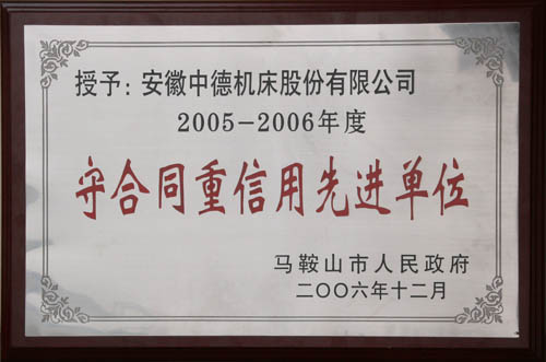 我公司成為馬鞍山市合同信用協(xié)會成立大會的理事單位,同時(shí)被市政府授予馬鞍山市2005-2006年度守合同重信用先進(jìn)單位稱號。