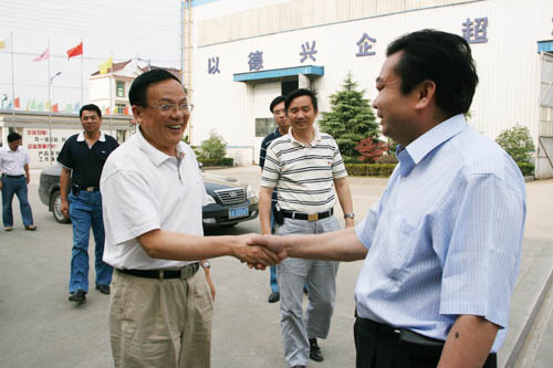 在鄭長(zhǎng)玉董事長(zhǎng)的陪同下,吳副書(shū)記等一行參觀了生產(chǎn)車(chē)間和成品車(chē)間并在公司會(huì)議室進(jìn)行了座談。在了解了我公司的發(fā)展歷程、生產(chǎn)銷(xiāo)售、人才培養(yǎng)等情況后,吳副書(shū)記等人對(duì)公司近年來(lái)所取得的經(jīng)營(yíng)成績(jī)給予充分肯定。他指出,工業(yè)是民族經(jīng)濟(jì)的支柱,尤其是機(jī)械設(shè)備工業(yè)是基礎(chǔ)中的基礎(chǔ)。在競(jìng)爭(zhēng)日趨激烈的市場(chǎng)環(huán)境下,企業(yè)競(jìng)爭(zhēng)力的提升關(guān)鍵要是靠人才的培養(yǎng),關(guān)鍵是要靠科技創(chuàng)新能力的提升和不斷完善的服務(wù)體系。同時(shí)吳副書(shū)記還指出,企業(yè)要發(fā)展必須實(shí)施“走出去”戰(zhàn)略,參與國(guó)際經(jīng)濟(jì)競(jìng)爭(zhēng)與合作,努力開(kāi)拓國(guó)際市場(chǎng),提高國(guó)際市場(chǎng)占有率,在國(guó)際分工與合作中取得有利地位。