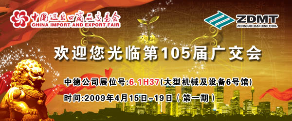 中德機(jī)床將參加第105屆春季廣交會,具體時(shí)間和地點(diǎn)是廣交會一期,4月15—4月19日,琶洲館大型設(shè)備及機(jī)械展區(qū)(6號館),展位號 6.1H37。歡迎各位新老客戶光臨。